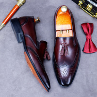 Sapatos de couro genuíno-Sapatos de vestido formal masculino, slip-on de cavalheiro, sapatos de couro casual com borla